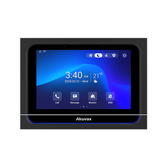 تاچ پنل Akuvox X933 با صفحه نمایش 7 اینچی لمسی و سیستم عامل Android 9، یک مانیتور هوشمند داخلی مناسب برای خانه و محیطهای اداری است. این پنل امکان ارتباط صوتی و تصویری با پنل خارجی و دیگر واحدها را فراهم میکند و با پروتکل SIP سازگار است.